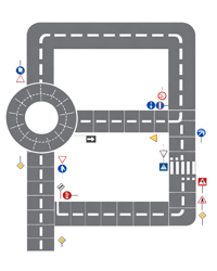 Používame reálne dopravné značky v správnych farbách a tvaroch, prispôsobené detskému vnímaniu: